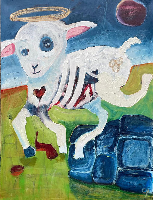Caroline Perkins Lamb to the Slaughter 2024. oil paint and oil bars on canvas.
